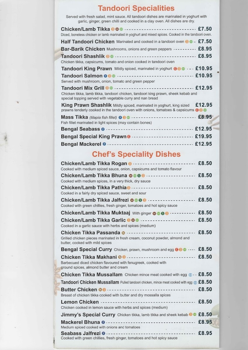 The menu at The Royal Bengal offers a rich selection of dishes that beautifully showcase the vibrant flavors of Indian cuisine, with options for every taste. The Starters range from the tender Tandoori Chicken to the flavorful Chicken Tikka and the sweet yet spicy Bengal Sweet Chilli Chicken, all promising a great beginning to any meal. For those seeking something more unique, the Chicken or Lamb Hasina or the crispy Chicken Pakora are also great choices.
